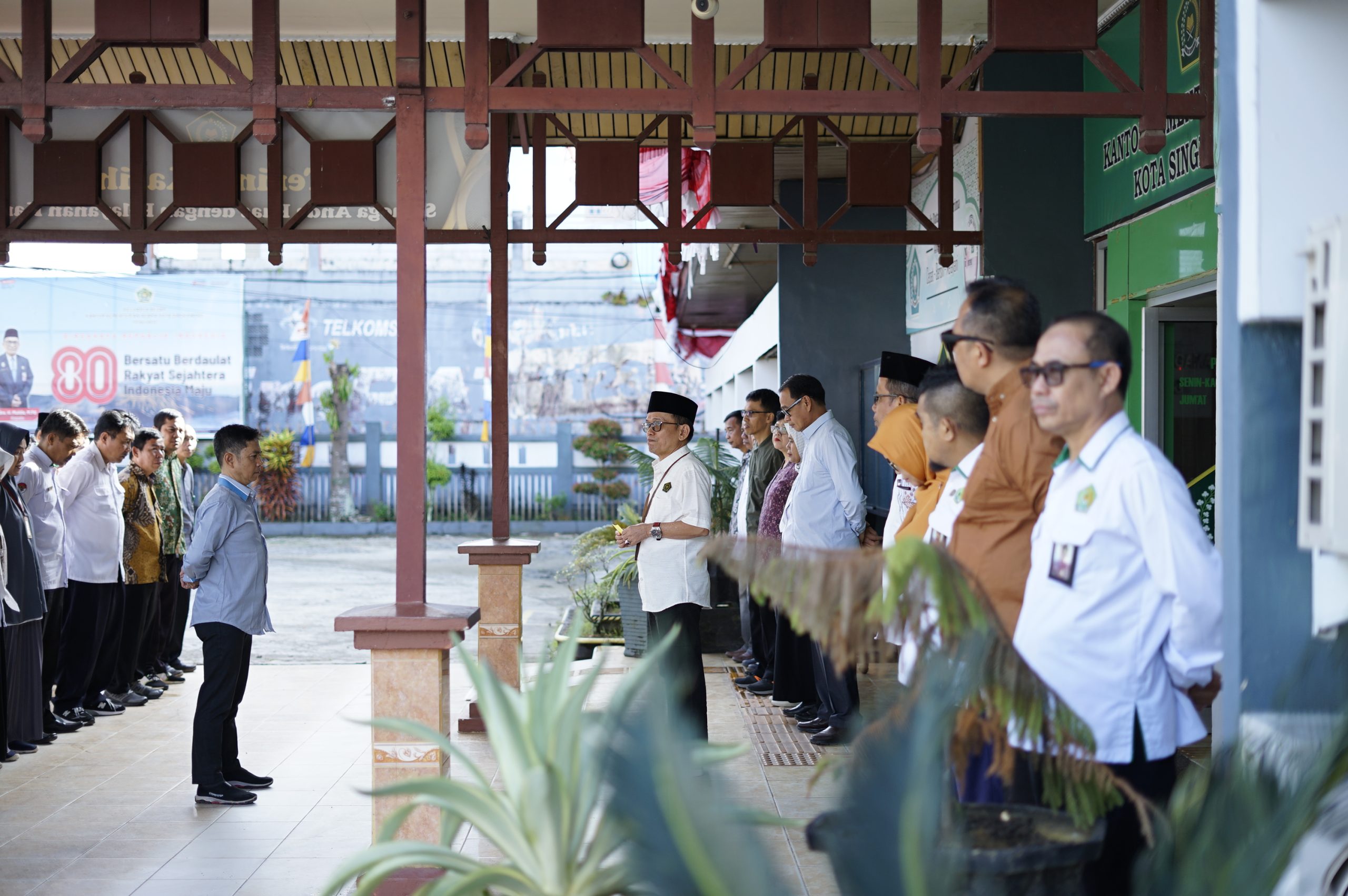 Singkawang (Kemenag) – Apel rutin awal bulan yang digelar di halaman utama Kantor Kementerian Agama (Kemenag) Kota Singkawang pada Senin (01/09) dipimpin langsung oleh Kepala Kantor, H. Muhlis, yang menyampaikan arahan penting hasil rapat daring bersama Menteri Agama RI.