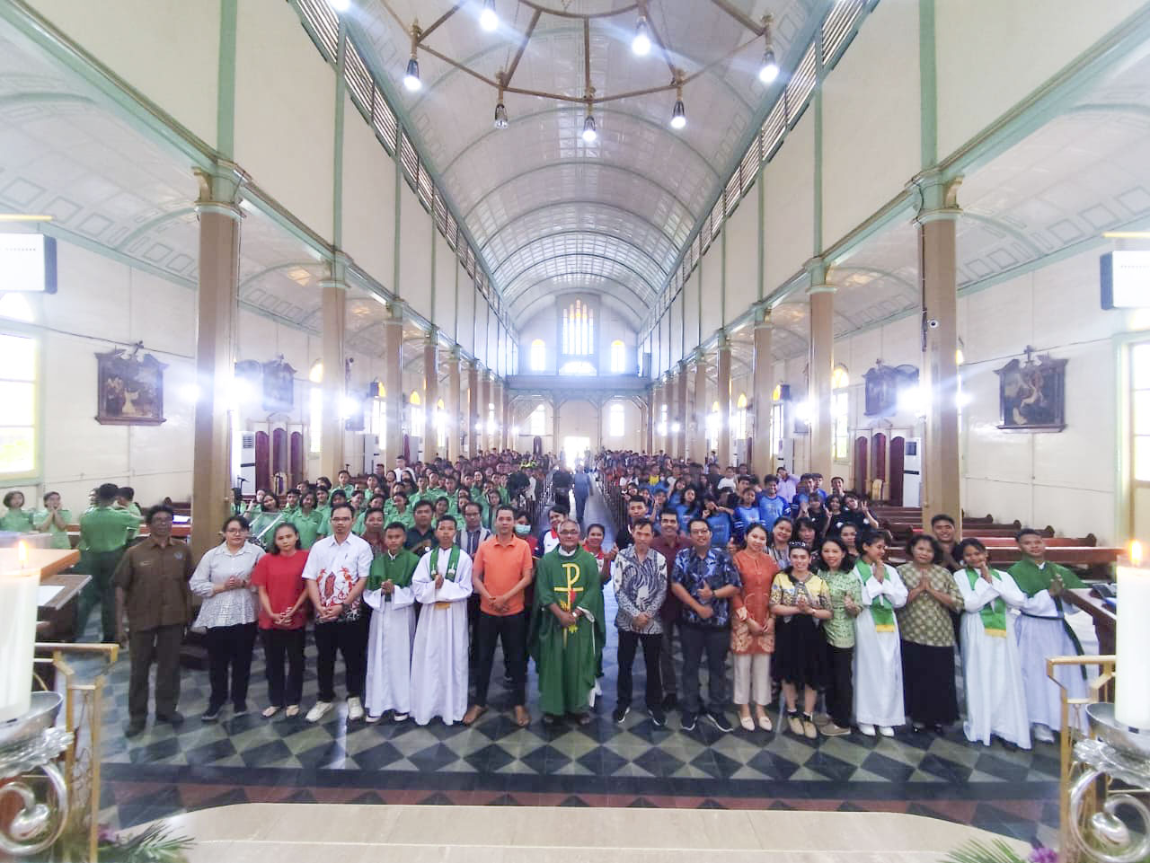 Singkawang (Kemenag) – Pelajar SMP serta SMA/SMK Negeri se-Kota Singkawang mengikuti MisaJumat Pertama yang digelar rutin setiap bulan sebagai