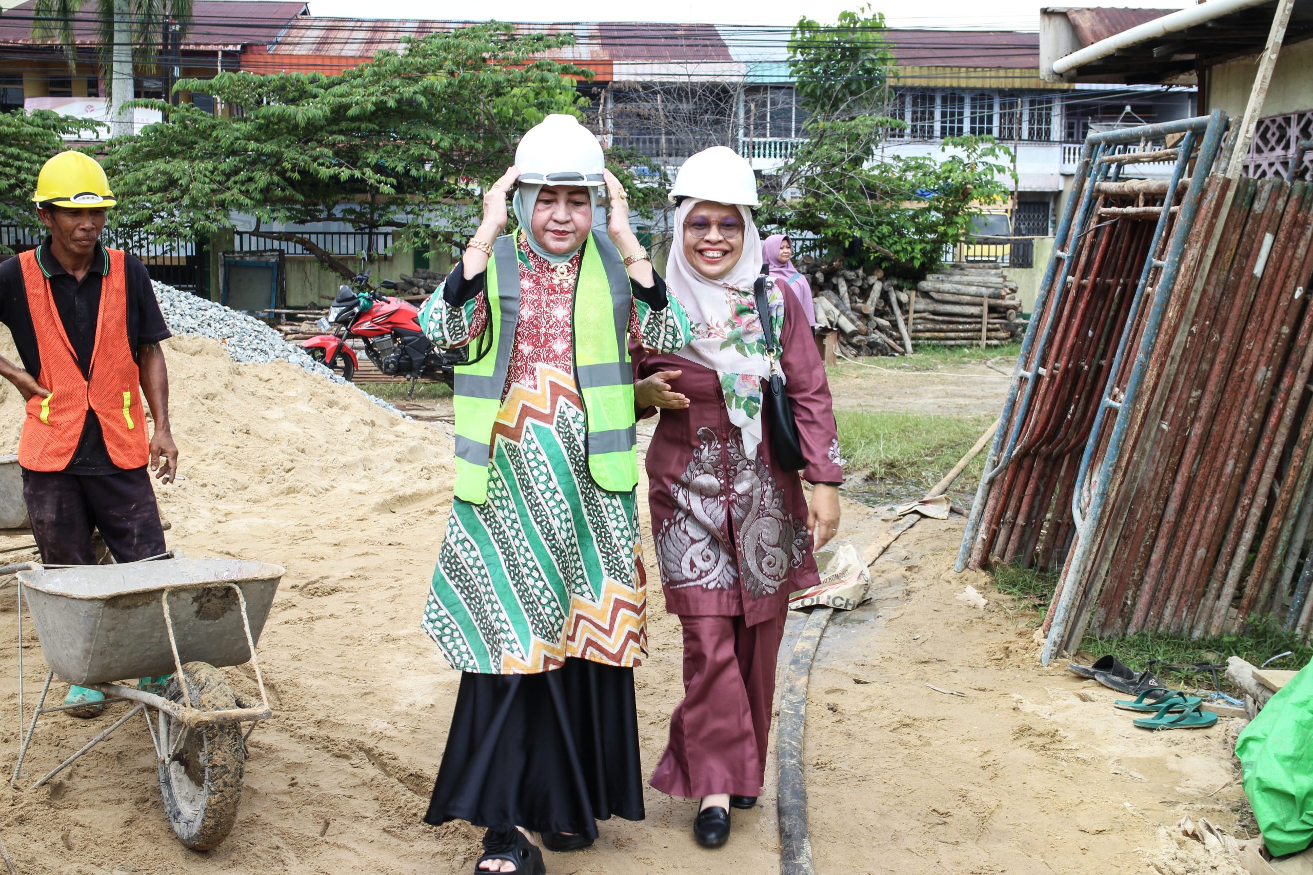 Dalam kunjungan monitoring dan evaluasi pembangunan Gedung Pusat Layanan Haji dan UmrahTerpadu (PLHUT), Gedung Kantor Kemenag Kota Singkawang di Jalan Alianyang, sertapembangunan ruang kelas Madrasah Ibtidaiyah Negeri (MIN) Singkawang di Jalan Marhaban PasirPanjang, Ketua Dharma Wanita Persatuan (DWP) Kanwil Kemenag Prov. Kalbar, Hj. SalbiahMuhajirin, turut hadir mendampingi bersama Ketua DWP Kemenag Singkawang, Hj. Masruraini.