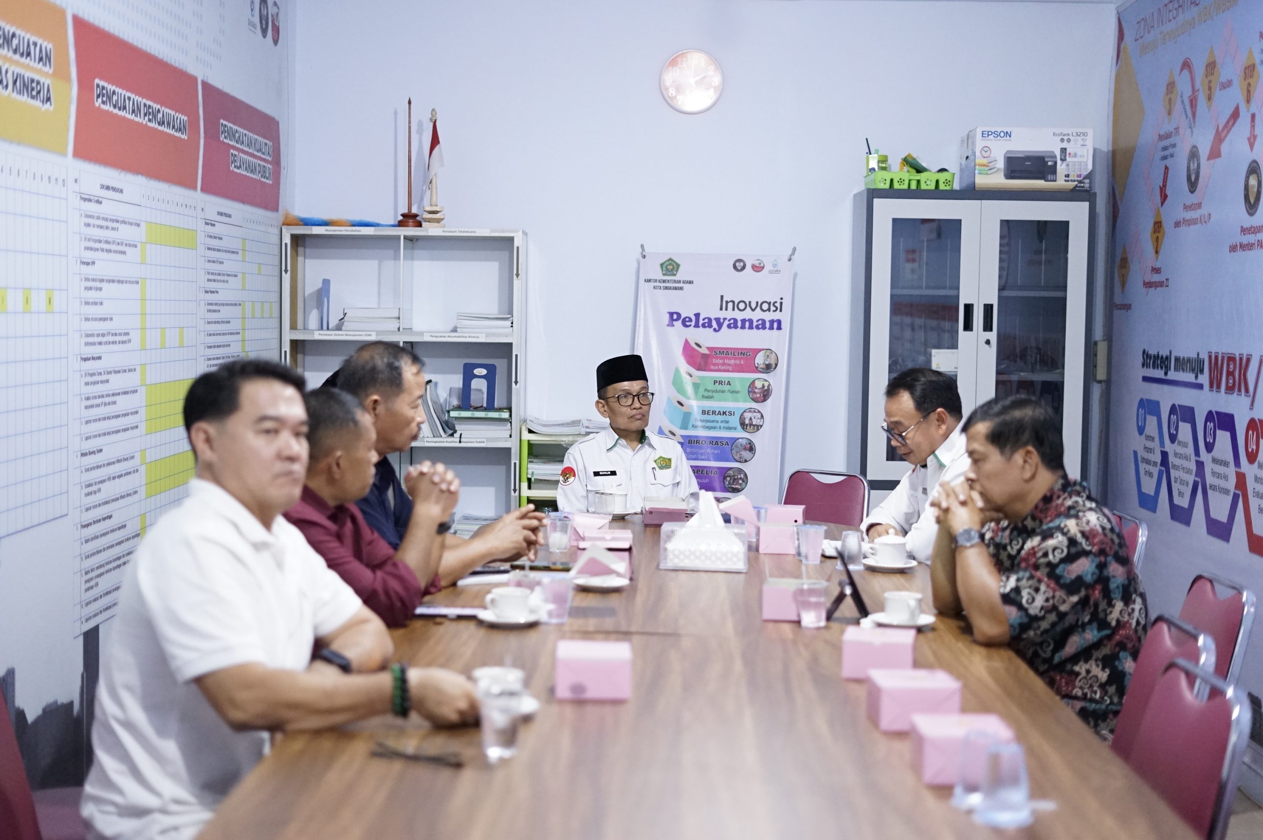 Singkawang (Kemenag) – Kantor Kementerian Agama (Kemenag) Kota Singkawang bersama Forum Kerukunan Umat Beragama (FKUB) menggelar rapat koordinasi di ruang Sekretariat Zona Integritas. Rapat ini dipimpin oleh Kepala Kemenag, H. Muhlis, didampingi Kasubbag TU, Aliyansah, dengantujuan memperkuat program kerukunan umat beragama serta memastikan tata kelola yang transparandan akuntabel, Senin (25/08/2025)
