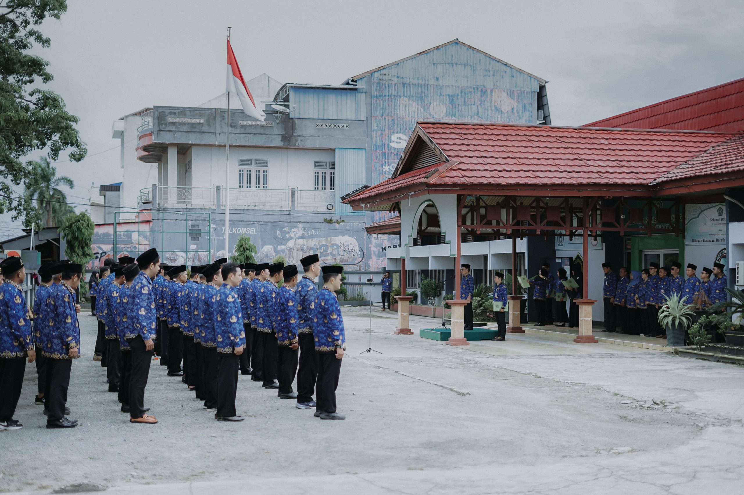 Singkawang (Kemenag) – Dalam rangka memperingati Hari Kesaktian Pancasila tahun 2025, Kantor Kementerian Agama Kota Singkawang menggelar upacara upacara di halaman utama kantor padaRabu (01/10). Upacara ini diikuti oleh seluruh ASN, baik PNS maupun PPPK, dari lingkungan Kantor Kemenag dan KUA se-Kota Singkawang dengan mengenakan seragam batik KORPRI.