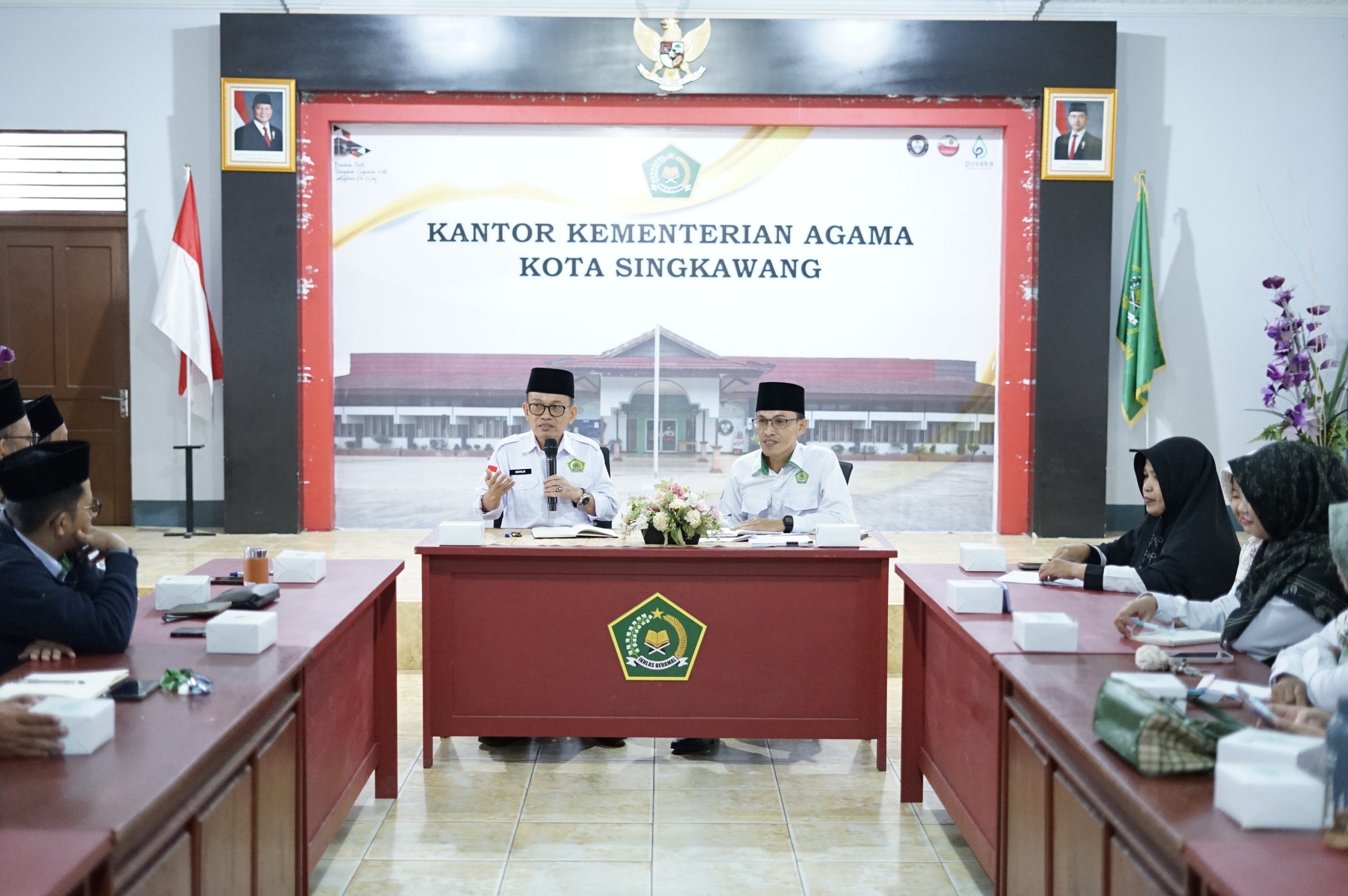 Singkawang (Kemenag) – Kepala Kantor Kementerian Agama Kota Singkawang Muhlis mengingatkan kembali kepada para penyuluh agama Islam untuk meningkatkan kompetensi dalam memberikan layanana bimbingan penyuluhan kepada masyarakat. Hal ini disampaikan Muhlis ketika memberikan pembinaan kepada seluruh penyuluh agama Islam se-Kota Singkawang pada Selasa (12/8) di Aula Kantor Kemenag Kota Singkawang. Dalam kegiatan tersebut Kepala Kantor Kemenag Kota Singkawang didampingi oleh Kepala Seksi Bimbingan Masyararat Islam Miftahul Khair.