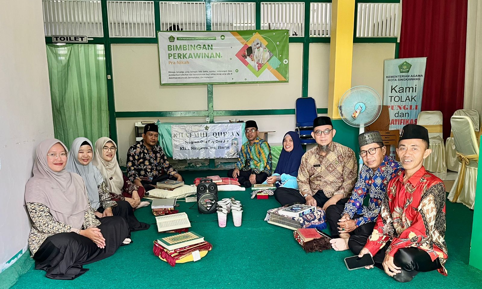 Singkawang (Kemenag) – Suasana penuh khidmat menyelimuti ruang bimbingan perkawinan(Bimwin) KUA Kecamatan Singkawang Barat, Rabu (22/10). Seluruh pegawai KUA, mulai dari stafhingga penyuluh agama Islam, berkumpul dalam kegiatan Khataman Al-Qur’an ke-3, yang merupakanbagian dari program rutin One Day One Juz (ODOJ).