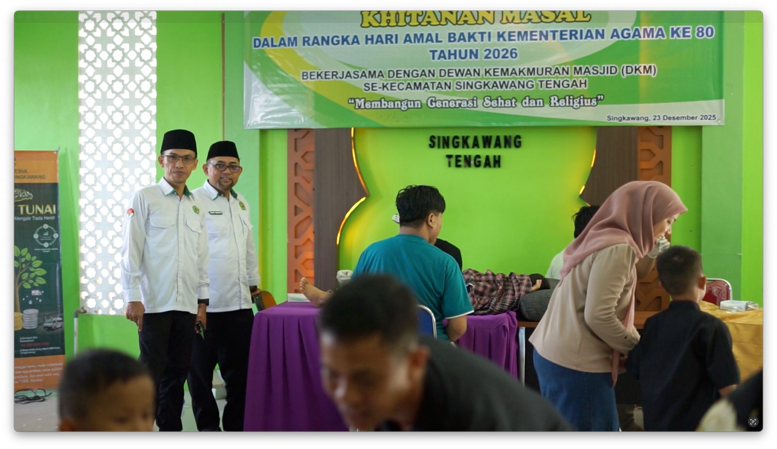 Singkawang (Kemenag) Menghidupkan nilai pengabdian dan pelayanan kepada umat, KUA Kecamatan Singkawang Tengah bersama DKM se-Kecamatan Singkawang Tengah menggelar sunatan massal dalam rangkaian memperingati Hari Amal Bakti (HAB) ke-80 Kementerian Agama RepublikIndonesia. Kegiatan ini menjadi refleksi semangat Kemenag sebagai pelayan umat yang hadir denganketulusan dan kepedulian. Kegiatan penuh makna ini dilaksanakan pada Selasa (23/12) pagi dandisambut antusias oleh masyarakat.
