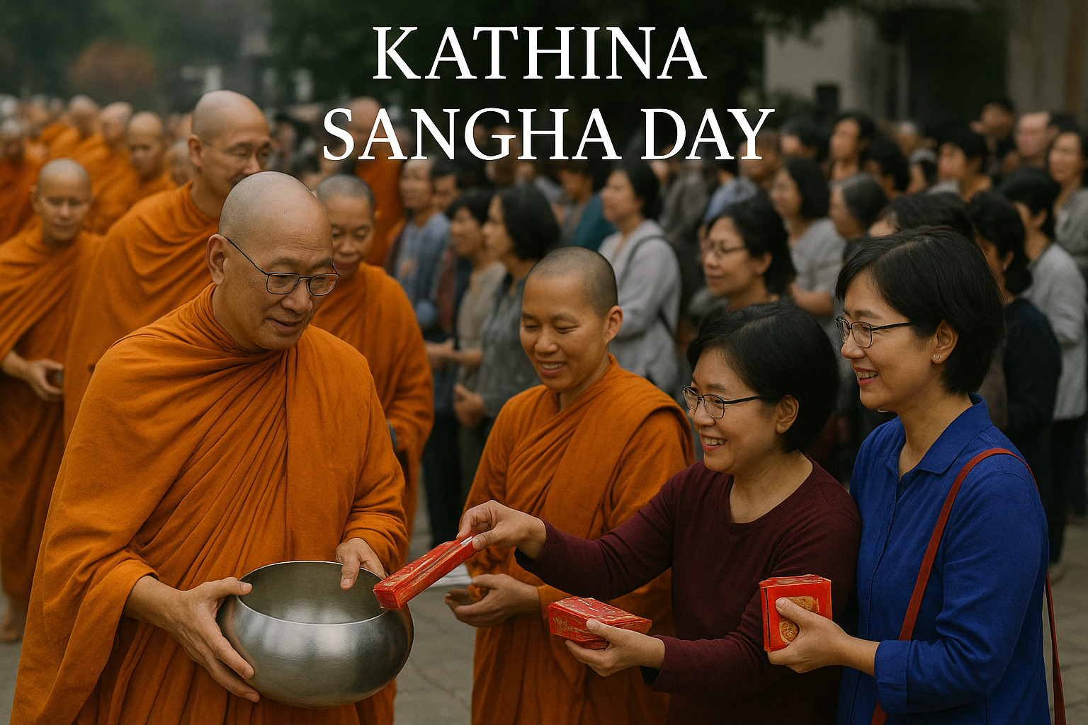 Hari Kathina dikenal sebagai hari Sangha [sang-gha]. Sangha adalah persatuan para biksu dan biksuni. Sangha Biksu dan Sangha Biksuni adalah para siswa Buddha yang telah meninggalkan kehidupan berkeluarga. Mereka menjalani kehidupan suci dan tinggal di wihara.