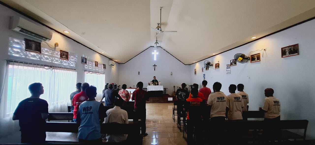 Dalam kunjungan tersebut, tim penyuluh bersama seorang Romo memimpin Perayaan Ekaristi sebuah momen sakral yang rutin dilaksanakan sebagai bagian dari pelayanan rohani dan peneguhan iman bagi para warga binaan.