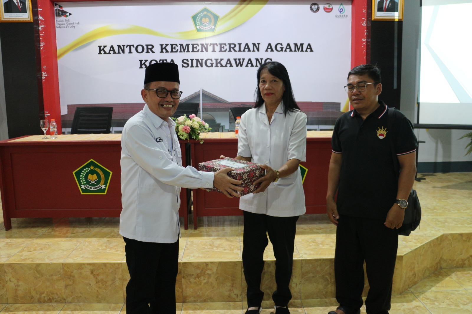 Dihadiri keluarga besar Kemenag Singkawang, acara sederhana namun bermakna ini dirangkaikan dengan pemberian cinderamata oleh Kepala Kantor, Kasubbag TU, serta para Kasi dan Penyelenggara sebagai ungkapan terima kasih atas dedikasi dan pengabdian Paulus Abet selama bertugas.