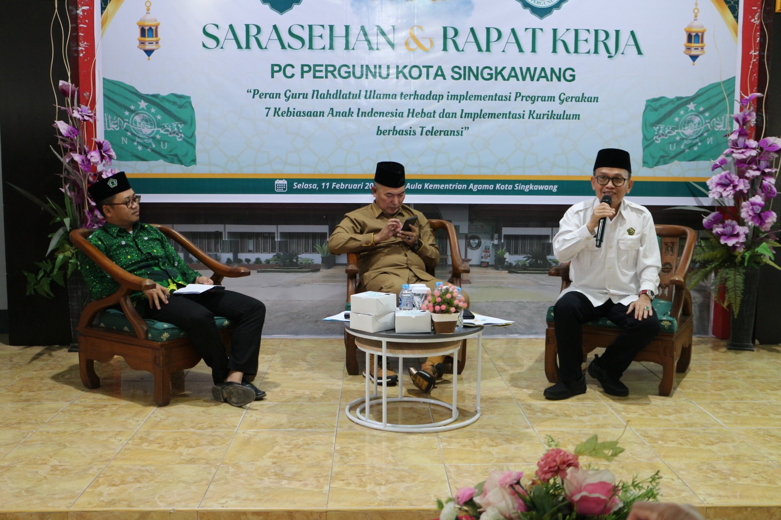 Singkawang (Kemenag) – Kepala Kantor Kementerian Agama (Kemenag) Kota Singkawang, H. Muhlis, secara resmi membuka acara Sarasehan dan Rapat Kerja (Raker) PC Persatuan Guru Nahdlatul Ulama (Pergunu) yang berlangsung di Operation Room Kantor Kemenag Singkawang. Acara ini mengangkat tema “Peran Guru Nahdlatul Ulama terhadap Implementasi Program 7 Kebiasaan Anak Indonesia Hebat dan Implementasi Kurikulum Berbasis Toleransi”, Selasa (10/02/2025).