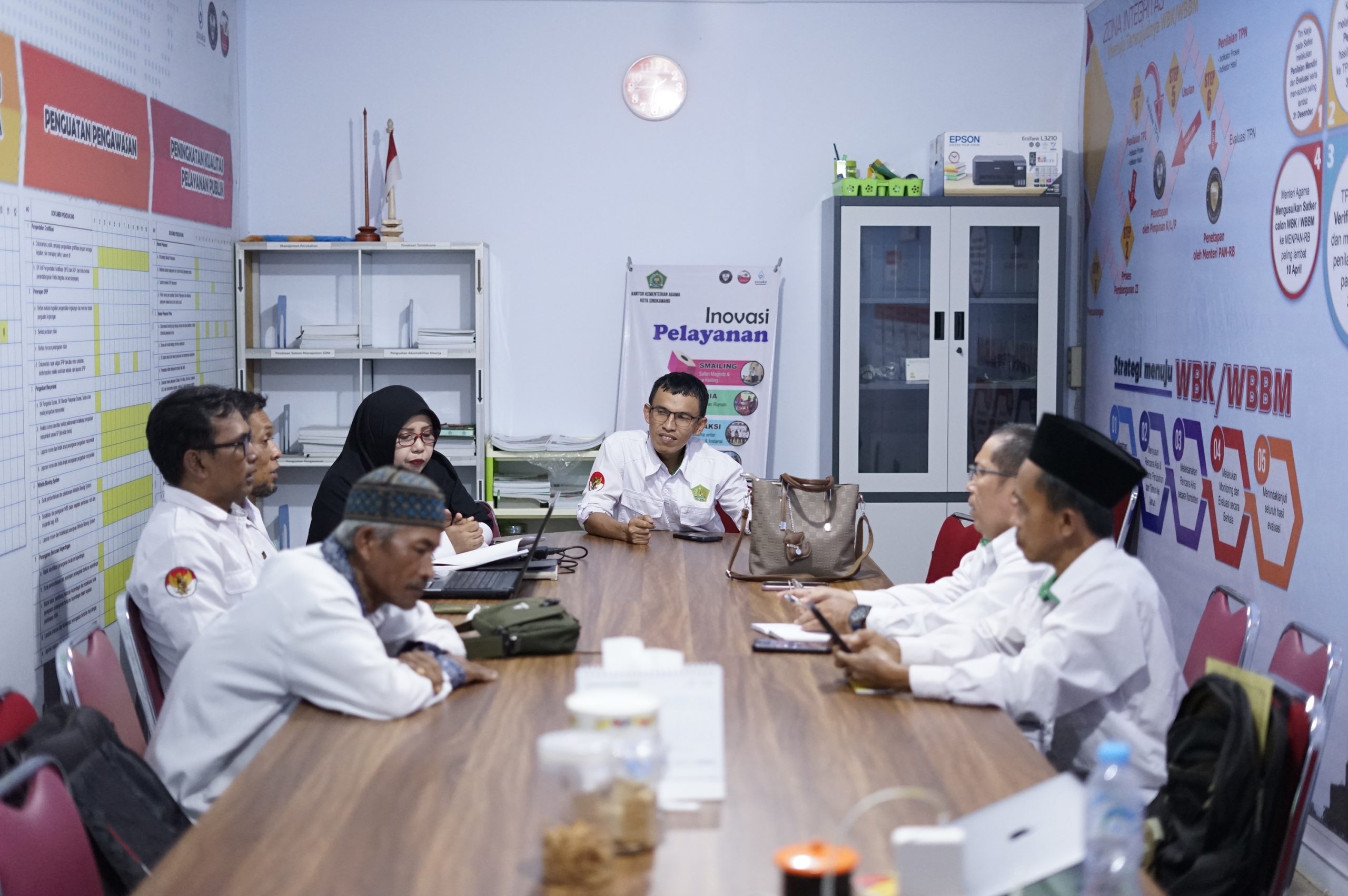 Singkawang (Kemenag) – Bertempat di Ruang Sekretariat Zona Integritas Kantor Kementerian Agama (Kemenag) Kota Singkawang, Kepala Seksi Bimbingan Masyarakat (Kasi Bimas) Islam, Miftahul Khair, didampingi Penyusun Bahan Urusan Agama sekaligus admin Simkah Kantor Kemenag Singkawang, Rachmad Jauhari, menggelar pertemuan bersama operator Sistem Informasi Manajemen Nikah (SIMKAH) dari seluruh KUA Kecamatan se-Kota Singkawang, pada Senin (11/08/2025).