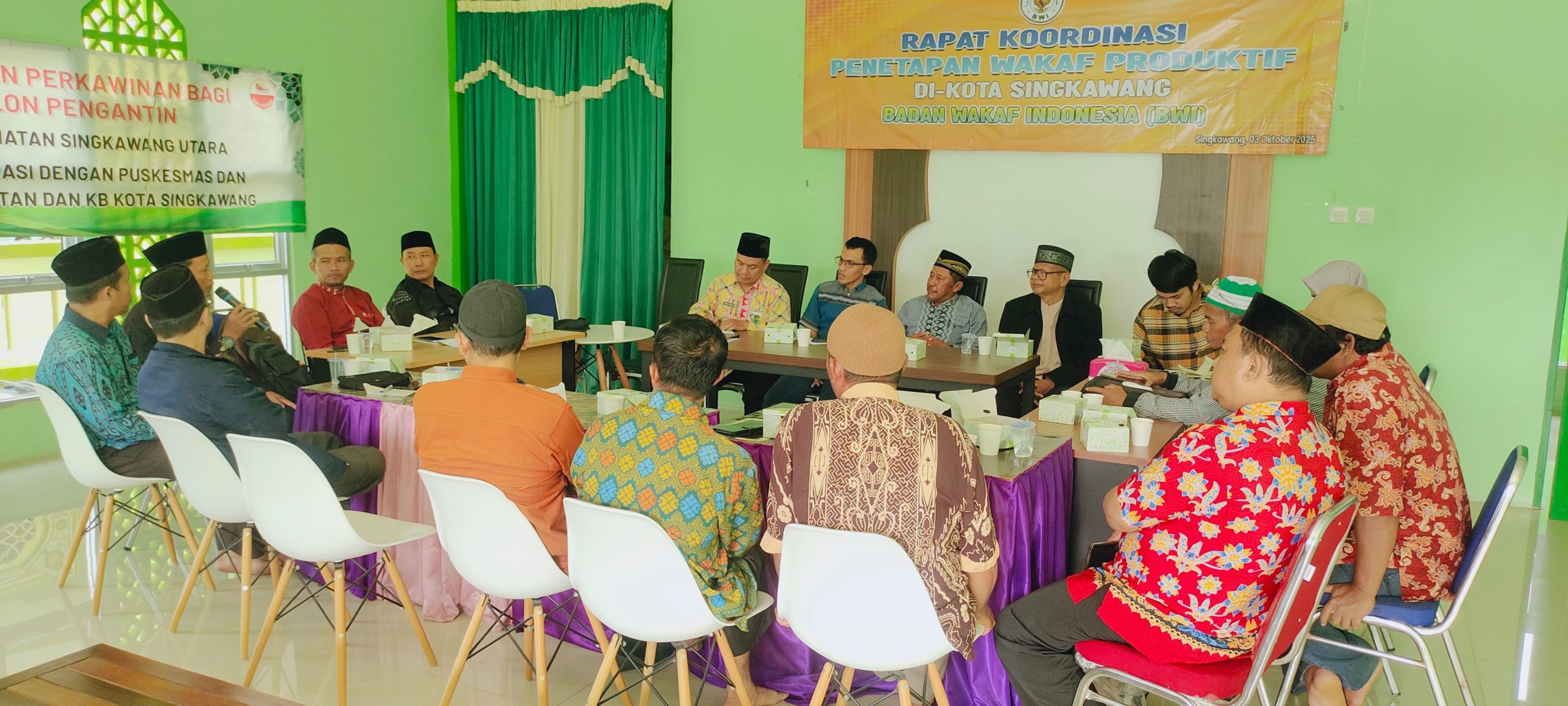 Kementerian Agama Kota Singkawang menyatakan dukungan penuh terhadap gerakan wakaf produktif yang digagas BWI Kota Singkawang. Melalui kerja sama lintas sektor dengan BPN/ATR, tanah wakaf yang masih atas nama pribadi akan segera diproses menjadi sertifikat wakaf produktif.