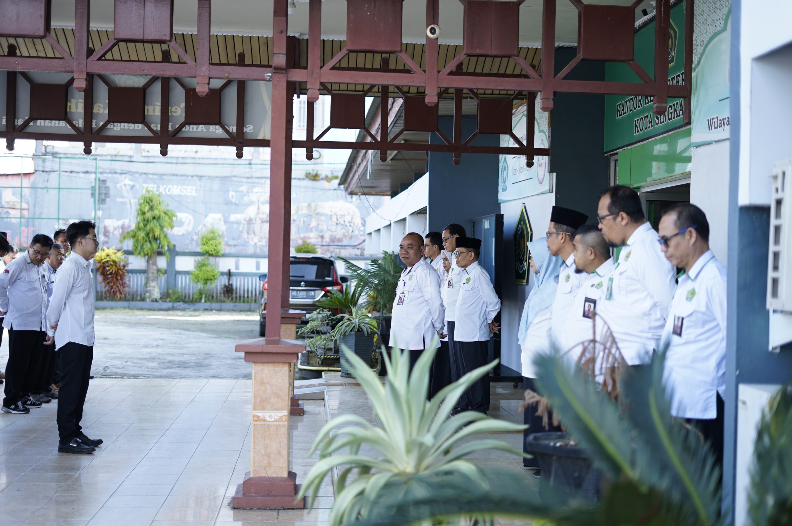 Singkawang (Kemenag) – Pagi yang cerah mengawali kegiatan rutin di Kantor Kementerian Agama (Kankemenag) Kota Singkawang pada Senin (13/10). Seluruh pegawai tampak berbaris rapi penuhsemangat kebersamaan di halaman utama kantor untuk mengikuti apel pagi yang dipimpin olehPenyelenggara Pendidikan Agama Buddha (PAB), Supiro yang menyampaikan sejumlah pesaninspiratif tentang pentingnya tanggung jawab, integritas, dan kerja dengan sepenuh hati.