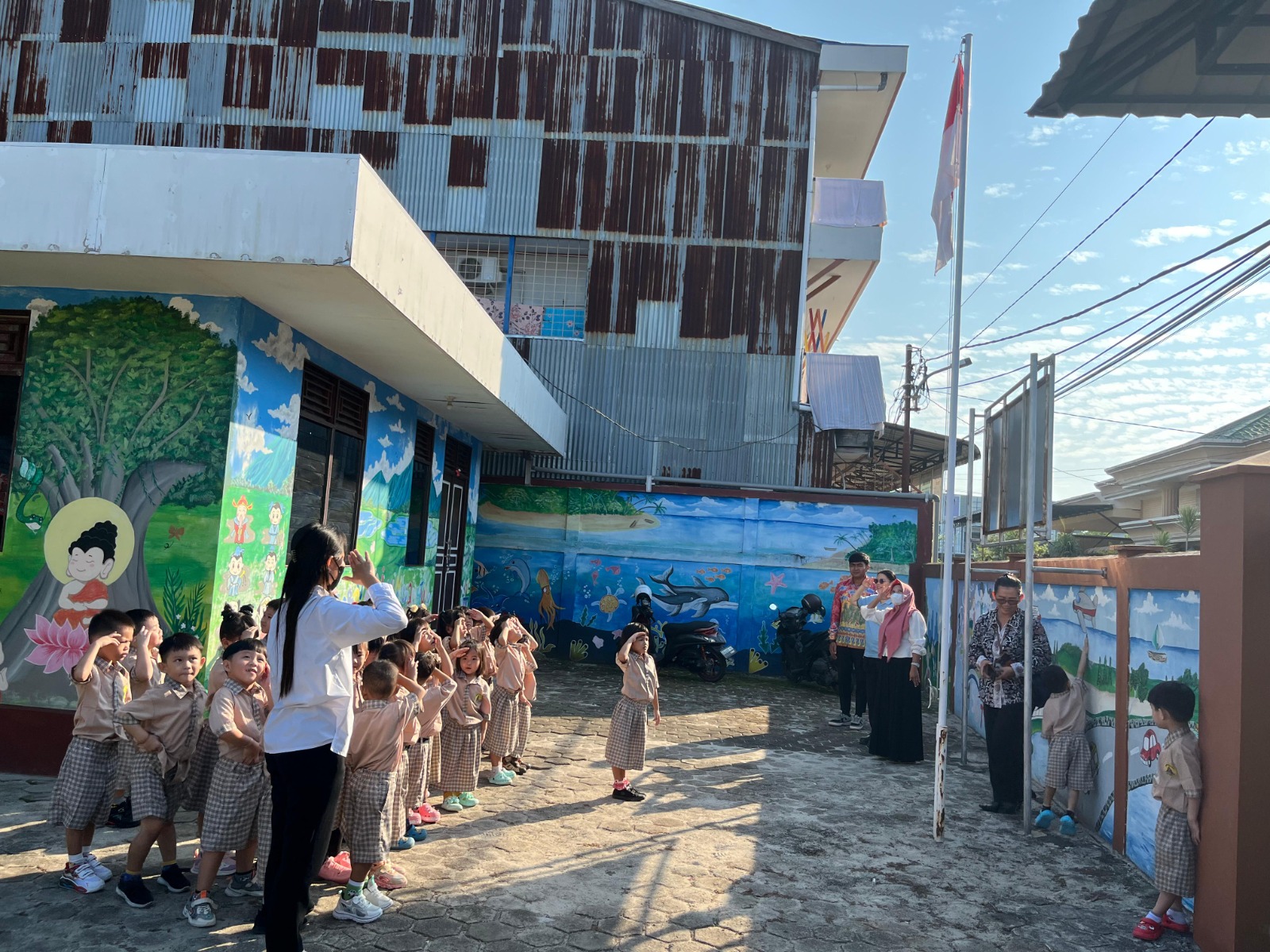 Dengan wajah ceria, para siswa mengikuti upacara yang dikemas secara sederhana namun penuhmakna. Mereka menyanyikan lagu-lagu anak, berdoa bersama, dan mendengarkan pesan inspiratif dariKepala TK. Dalam sambutannya, Kepala TK Fajar Mulia, Susan menyampaikan pesan menyentuhkepada para murid.